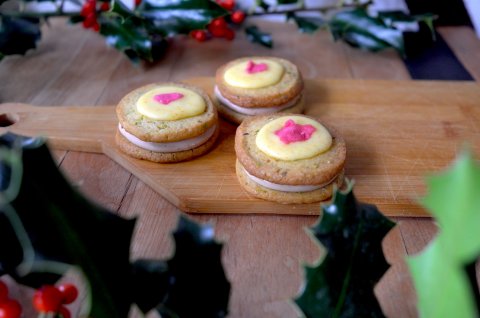 Varm fløde op til lige under kogepunktet. Hæld den varme fløde over chokoladen og smelt den. Rør godt rundt. Kom chokoladecremen i en sprøjtepose og vent cirka en halv time – eller til cremen er sprøjteklar. Saml småkagerne to og to med chokoladecreme i midten.